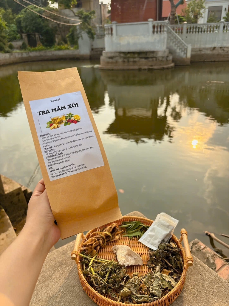 Trà mâm xôi ngũ vị,với công dụng : hỗ trợ sức khỏe sinh sản nữ giới, giúp tử cung săn chắc, giảm đau bụng kinh và hỗ trợ chuyển dạ dễ dàng hơn. Loại trà này còn giàu chất chống oxy hóa, hỗ trợ tiêu hóa, tăng cường miễn dịch, điều hòa huyết áp và có thể giúp cải thiện sức khỏe răng miệng.